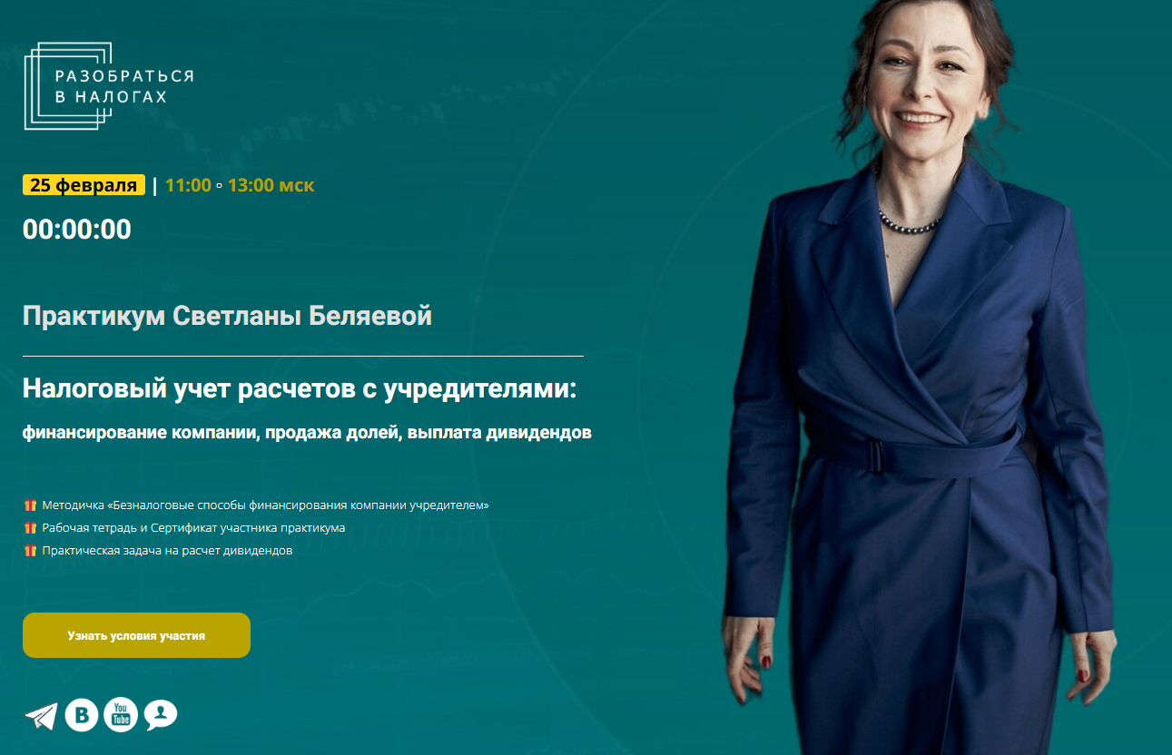 [Светлана Беляева] Налоговый учет расчетов с учредителями: финансирование компании, продажа долей, выплата дивидендов (2025)