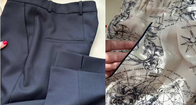 1) ВТО и полный пошив классических брюк. Карманы с отрезным бочком на передних половинках и листочкой на задних. Пояс на корсаже. Низ с разрезом по шаговому шву.