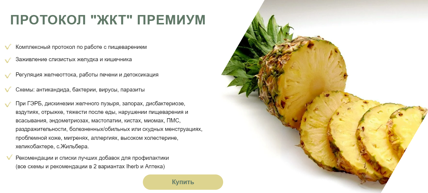 Все, что необходимо для хорошей работы ЖКТ с большим акцентом на работу с кишечником и желчеоттоком. Этот протокол вобрал в себя лучшее — поэтому я назвала его «Премиум».