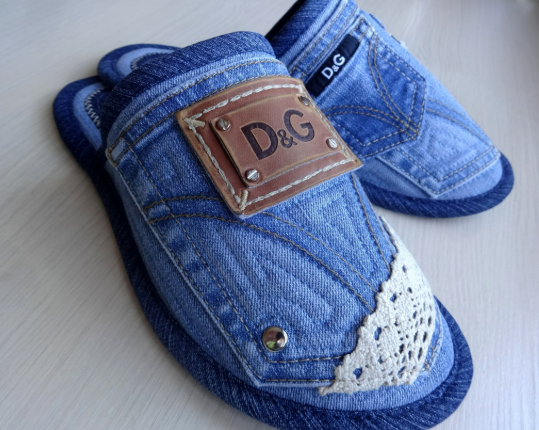 4) Подробный фото МК по пошиву джинсовых тапочек в подарок.