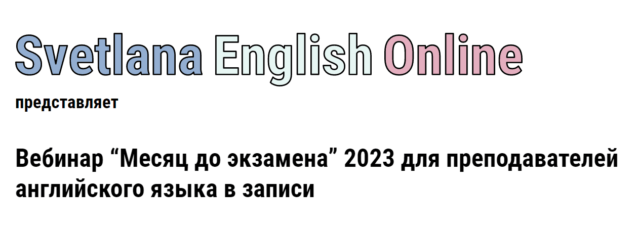 ÐÐµÐ±Ð¸Ð½Ð°Ñ âÐеÑÑÑ Ð´Ð¾ Ñкзаменаâ 2023 Ð´Ð»Ñ Ð¿ÑеподаваÑелей английÑкого ÑзÑка. ÐодгоÑовка к ÑÐºÐ·Ð°Ð¼ÐµÐ½Ñ â нелÑгкое дело. Ðомимо ÑзÑка и ÑоÑмаÑа еÑÑÑ ÐµÑÑ Ð¼Ð½Ð¾Ð¶ÐµÑÑво нÑанÑов, о коÑоÑÑÑ Ð¼Ð½Ð¾Ð³Ð¸Ðµ...www.svetlanaenglishonline.ru
