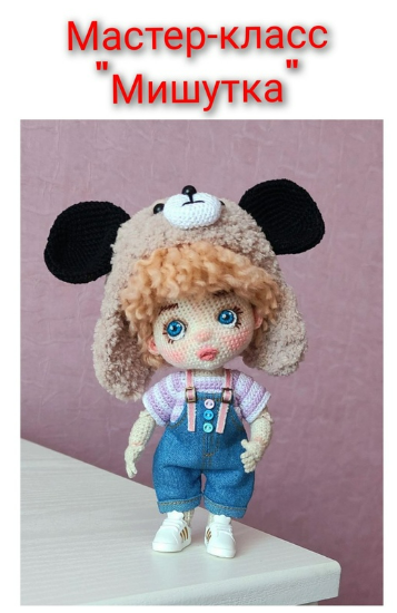 Вы получите описание на 21 страницах, включает в себя 28 фото. Высота 14 см. Плечевые и бедерные соединения на пластиковых суставах. Коленные и локтевые соединения шарнирно-нитевые. Голова поворотная.