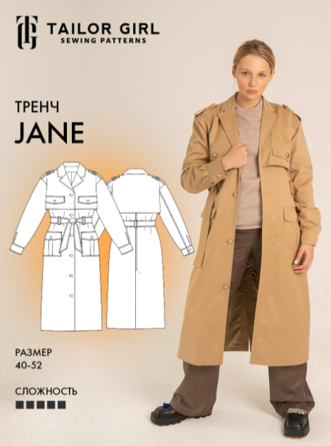 - Получите выкройку тренча Jane. На выбор взрослые размеры RU 40-52 в трех ростовых группах (154-160; 162-168; 170-176 см)