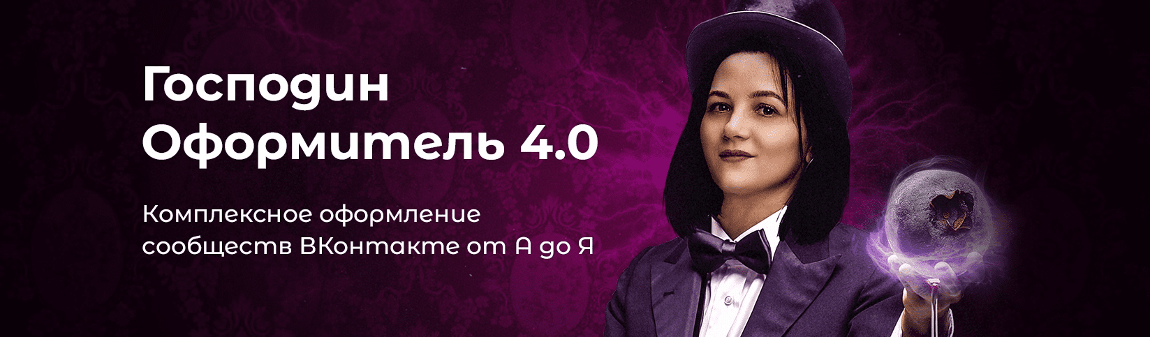 «Господин Оформитель» – это курс, полностью посвященный оформлению коммерческого сообщества ВКонтакте от А до Я, используя программу Фотошоп. Однако, азы программы разбираться на курсе не будут, поэтому, если ваша цель – конкретно Фотошоп, то вам не на этот курс (рассмотрите практический курс «Сочные баннеры»).