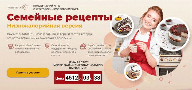 Вы можете навсегда избавиться от этих проблем и их последствий всего за 2 месяца, благодаря нашему уникальному курсу "Семейные рецепты. Низкокалорийная версия", в котором вы научитесь готовить самые популярные семейные десерты в низкокалорийных вариантах, не уступающих по своему вкусу оригиналу, как профессиональный кондитер