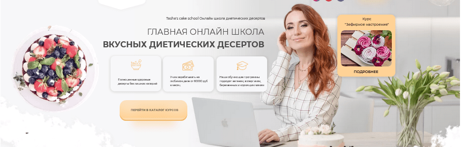 Диетические сладости: не об этом ли мечтает каждый сладкоежка, который постоянно борется с лишним весом? Основатель кулинарной онлайн-школы «Tasha's Cake» Таша Коробейникова подготовила авторский курс для всех, кто хочет научиться готовить низкокалорийные десерты и баловать себя, свою семью или клиентов вкусными и полезными десертами.