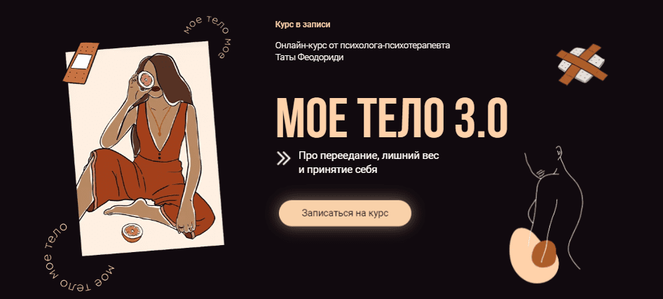- Комплесный подход. Курс "Мое Тело" - это НЕ про временный метод похудения! А про путь к психологическому и соматическому здоровью, путем проработки проблем и перестраивания системы питания!