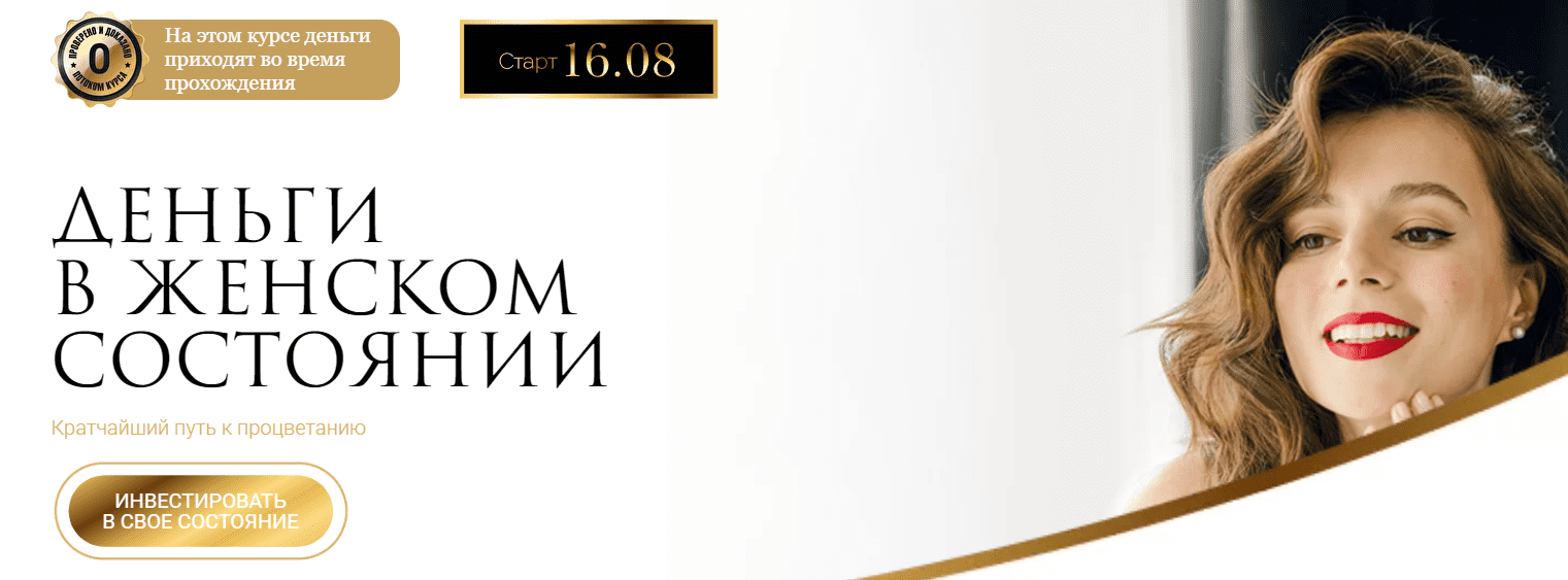 Работа над финансовой стороной жизни начинается с прокачки женского состояния. Новый курс "Деньги в женском состоянии" от блоггера @tati_lar, автора курса "Кнопочка женского состояния" и книги "Девушка на выданье".