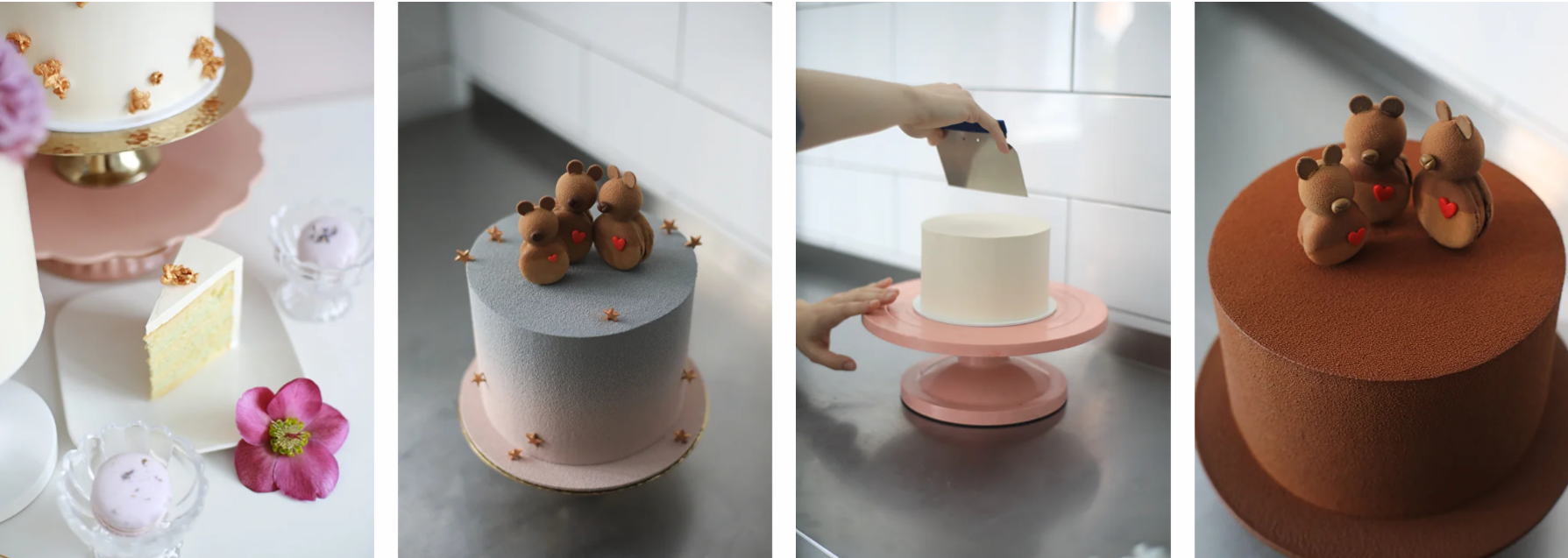 - Торт будет покрыт кремом с применением техники «Градиент» и украшен фирменными мишками с курса по Макарон