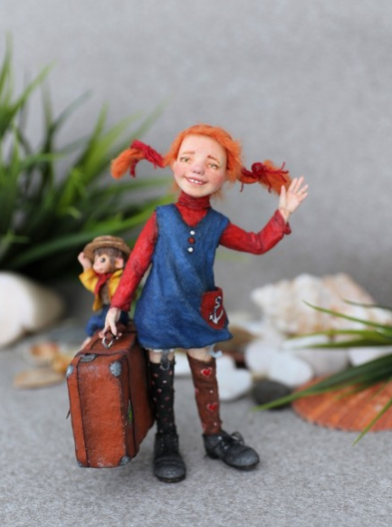 На мастер-классе мы сделаем парную композицию - озорную Пеппи и ее друга господина Нильсона с чемоданом денег.
