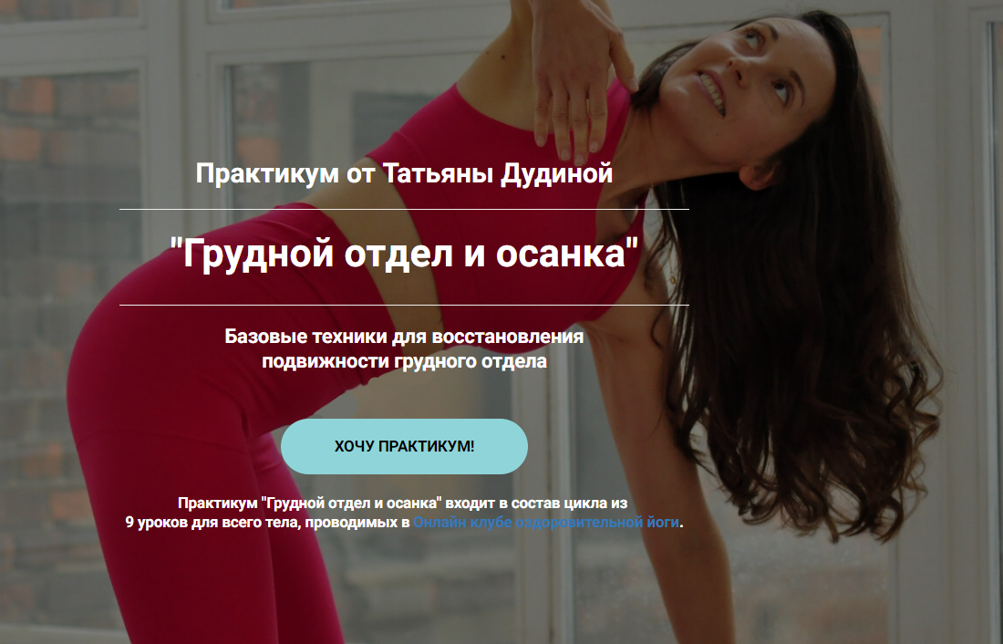 Практикум - это часовой урок, который фокусируется на тренировке и улучшении состояния грудного отдела позвоночника.