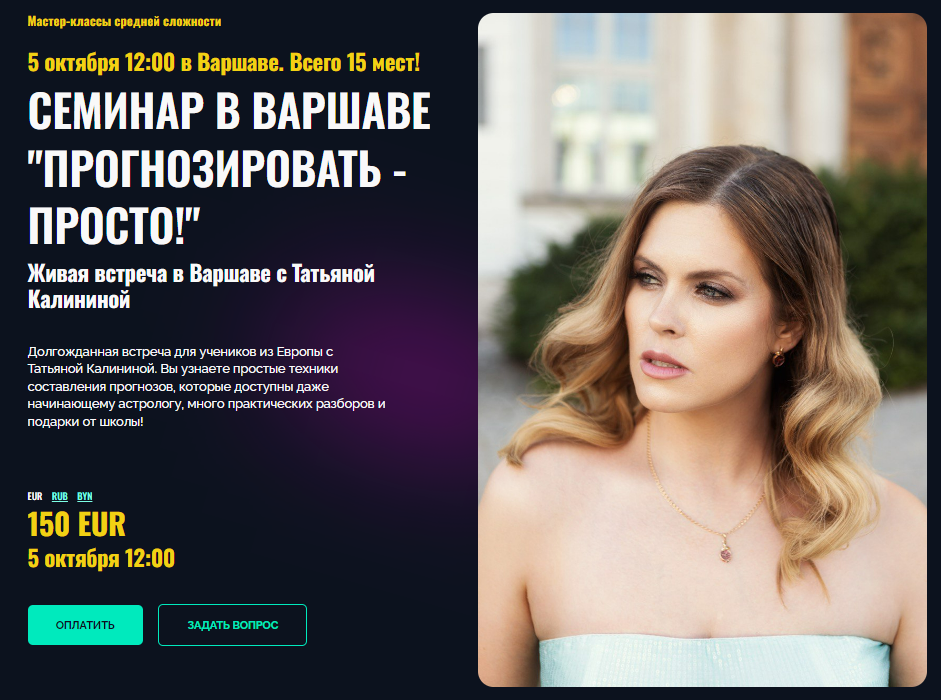 Скачать:Живая встреча в Варшаве с Татьяной Калининой Прогнозировать - просто! | Школа прогнозов Альфа