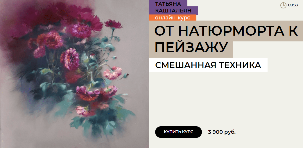 В курсе Татьяны Каштальян вы нарисуете три красивых нежных картины — зимний и летний пейзажи и букет осенних хризантем. В каждом уроке вы будете учится применять разные приемы и техники работы: рисовать сухой пастелью по цветной бумаге, работать мелками по угольному тоновому эскизу или по акварельному подмалёвку. Художник расскажет о материалах, их свойствах и особенностях, поговорит о колористике и работе с референсами, шаг за шагом проведет вас от замысла и сюжета до финальных акцентов.