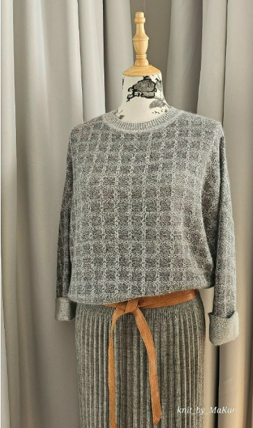 ширина полотна 70-80см, зависит от подбора пряжи и плотности плечо спущеное длину джемпера выбираете сами