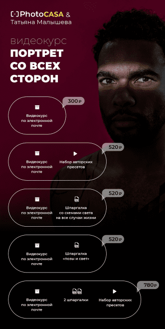 Видеокурс «Портрет со всех сторон» научит вас всем тонкостям работы в данном жанре. Как воплощать идеи с минимумом затрат, работа со светом и цветом, как снимать на любой локации и многое другое в новом и уникальном видеокурсе от автора PhotoCASA.