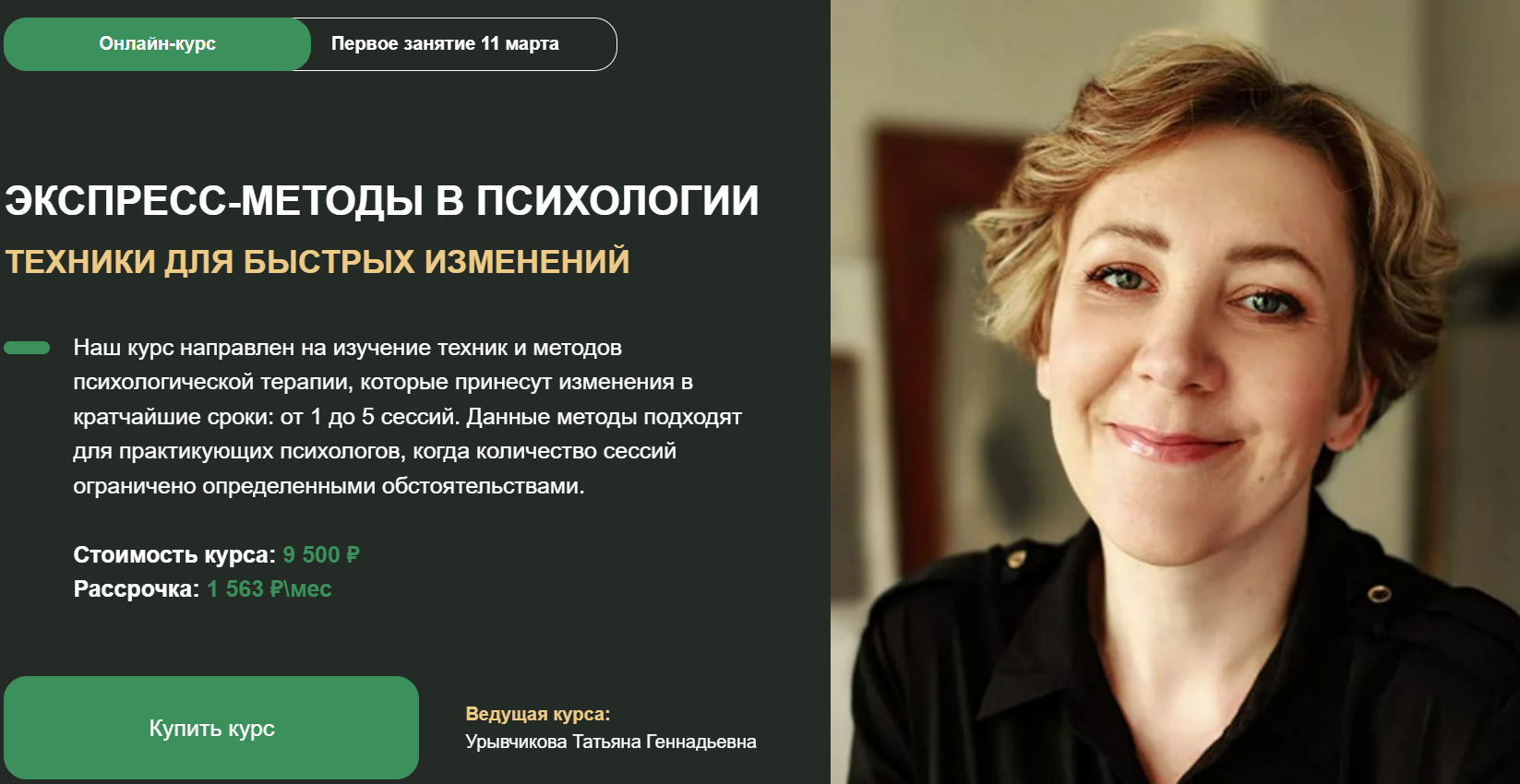 Наш курс направлен на изучение техник и методов психологической терапии, которые принесут изменения в кратчайшие сроки: от 1 до 5 сессий.