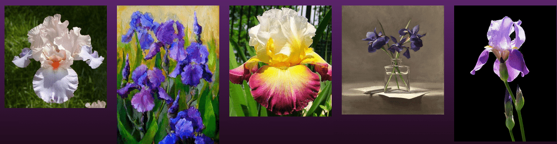 - Писать различные виды ирисов