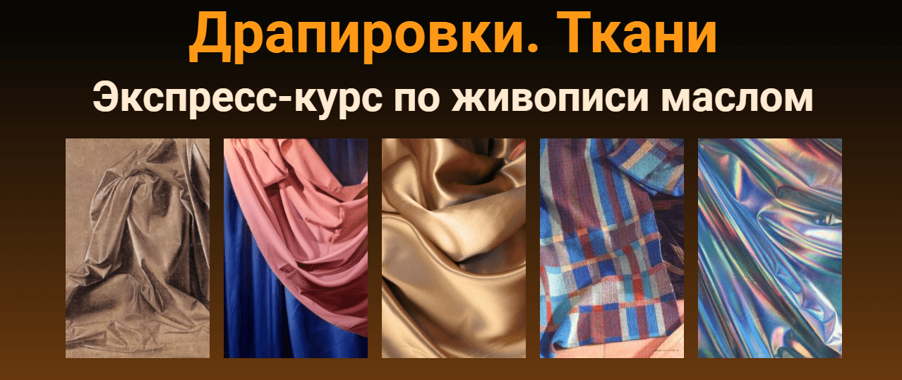 Ткани и драпировки различных цветов, видов и форм являются украшением множества произведений. Кто из вас не рассматривал ниспадающие одеяния людей на картинах, представленных в музее, и не задумывался, как же все-таки художникам удается передавать каждую складку при сохранении общей формы? Ответ на вопрос «как это сделано» вы узнаете на экспресс-курсе «Драпировки. Ткани». Вы поймете, как пишутся классические драпировки со складками, как передавать форму предметов под драпировками, какие свойства имеют различные поверхности – гладкая шелковая ткань, грубоватый хлопок и другие, не менее интересные, освоите работу с тоном и цветом, а также поймете, как писать тени в складках – где делать их более темными, где более светлыми, а где необходимы дополнительные оттенки и полутона.