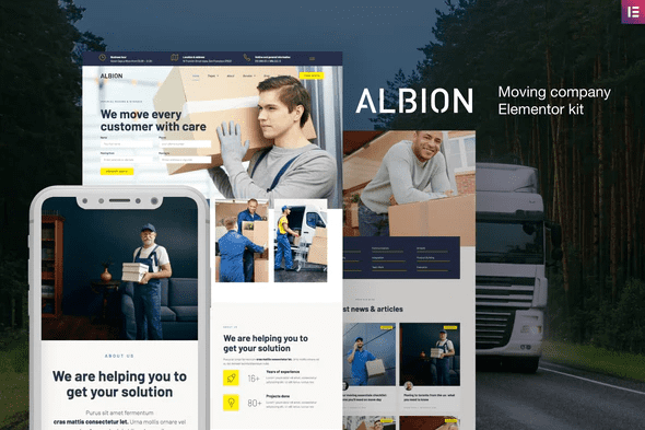 Albion - это комплект шаблонов Elementor для мувинговой компании.