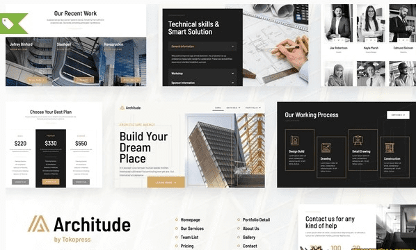 Architude - это премиум комплект шаблонов Elementor специально для тех, кому нужен минимальный и современный стиль, например, "архитектор", "экстерьер и интерьер". Этот комплект шаблонов поставляется с 10 различными страницами для вашего архитектурного сайта. Проверьте демо-версию, она выглядит очень хорошо на экране, который больше 1280px, и все еще также выглядит на меньшем экране с полностью отзывчивой функцией этой темы.