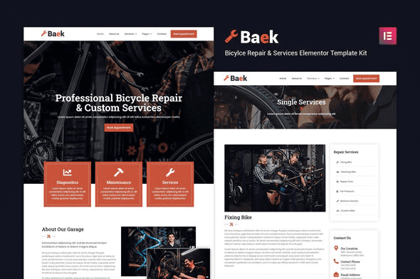 Baek - Bicycle Repair and Service Elementor Template Kit