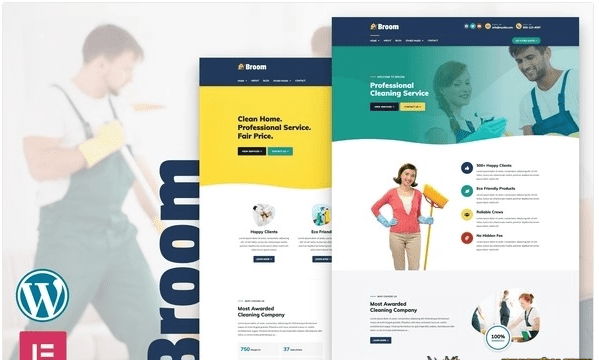 Broom - это современный комплект шаблонов Elementor, специально разработанный для клининговых компаний.