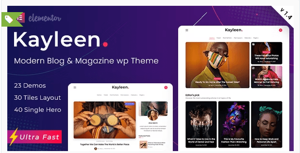 Kayleen поставляется с Elementor Page Builder, несколькими мощными пользовательскими виджетами и мощной панелью параметров. Это позволяет вам легко и красиво настраивать и оформлять свой сайт с помощью перетаскивания.