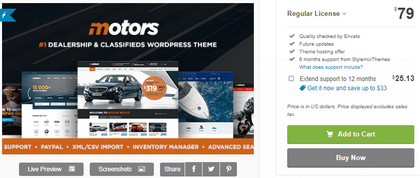 Motors v4.9.7 Nulled - уникальный автомобильный премиум шаблон для WordPress, идеально подойдет для порталов, на которых продают, покупают или арендуют транспортные средства через веб-сайт. Шаблон имеет пакетный XML и CSV импорт списков транспортных средств.