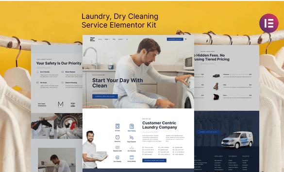 Wash & Rinse - это Elementor Kit для прачечной и химчистки.