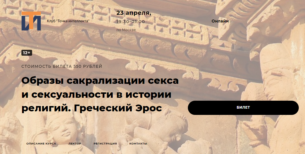Купите билеты на событие: Образы сакрализации секса и сексуальности в истории религий. Греческий Эрос, 23 апреля 2024, 19:30–21:00 (Онлайн)events.nethouse.ru