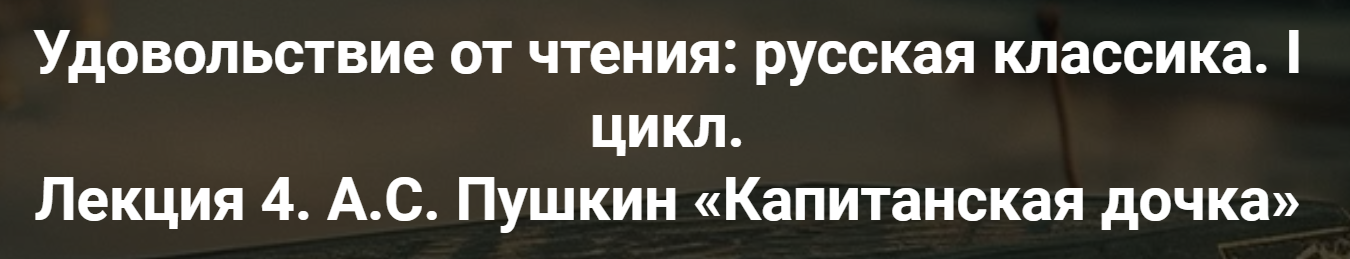 Название: Удовольствие от чтения - русская классика. Лекция 4. А.С. Пушкин «Капитанская дочка» (2024)