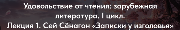 Название: Удовольствие от чтения - зарубежная литература. I цикл. Лекция 1. Сей Сёнагон «Записки у изголовья» (2024)