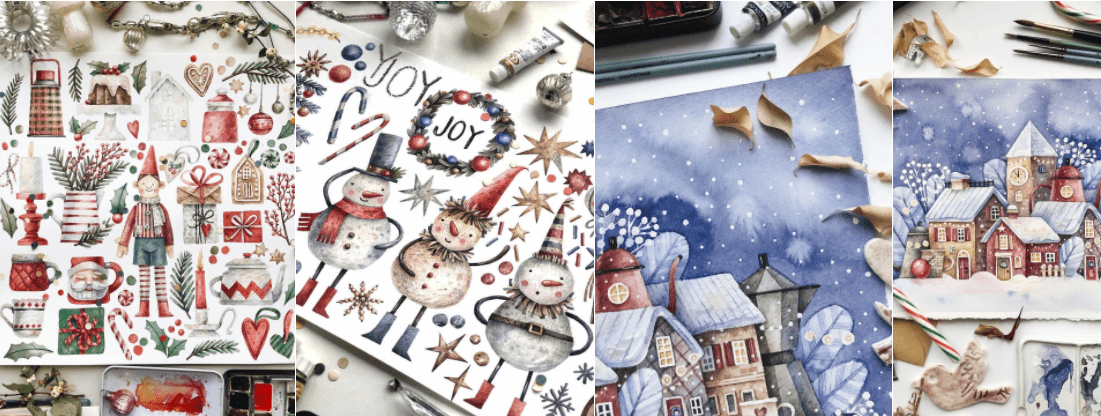 Приглашаю вас создать коллекцию иллюстраций для графических стоков, стикерпака, открыткок, праздничного декора, или просто порисовать акварелью в хорошей компании!