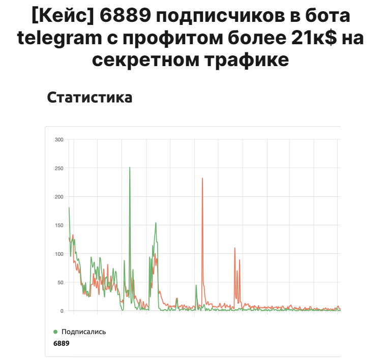 [Кейс] 6889 подписчиков в бота telegram с профитом более 21к$ на секретном трафике
