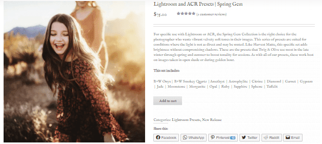 For specific use with Lightroom or ACR, the Spring Gem Collection is the right choice for the photographer who wants vibrant velvety soft tones in their images. This series of presets are suited for conditions where the light is not as direct and may be muted. Like Harvest Matte, this specific...twigandolive.com