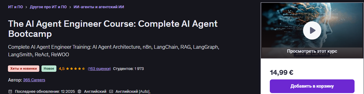 - Программа обучения инженеров по разработке ИИ-агентов стоимостью 1250 долларов.