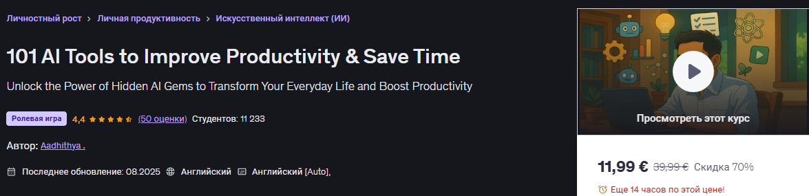 [Аадитья] [Udemy] 101 инструмент ИИ для повышения производительности и экономии времени (2025)