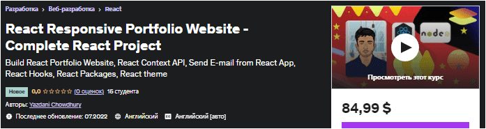 [Udemy] Адаптивный веб-сайт портфолио React — завершенный проект React (2022)