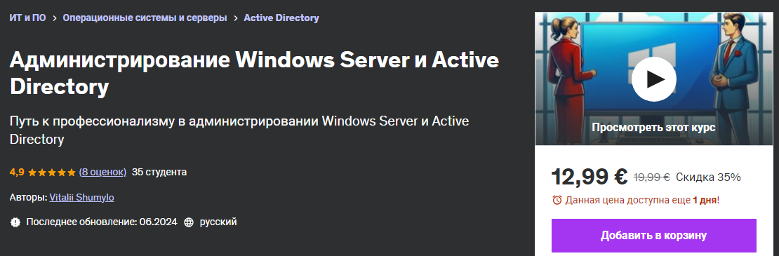 Курс включает в себя подробные лекции, практические занятия и реальные сценарии, которые помогут учащимся применить полученные знания на практике. По завершении курса студенты будут обладать всеми необходимыми навыками и знаниями для успешной работы с Windows Server и Active Directory в реальных рабочих условиях.
