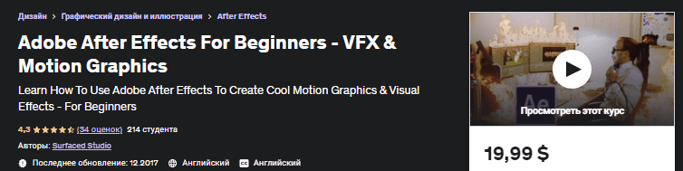 [Udemy] Adobe After Effects Для Начинающих – Vfx и Motion Graphics (2017)