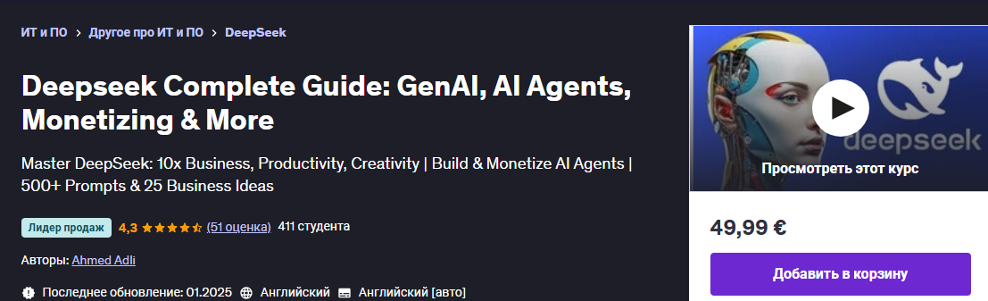 [Ahmed Adli] [Udemy] Полное руководство по Deepseek: GenAI, ИИ-агенты, монетизация (2025)