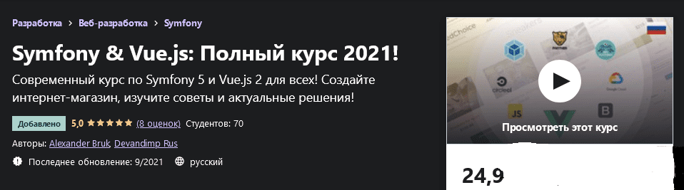 [Udemy] Alexander Bruk - Symfony & Vue.js: Полный курс 2021!