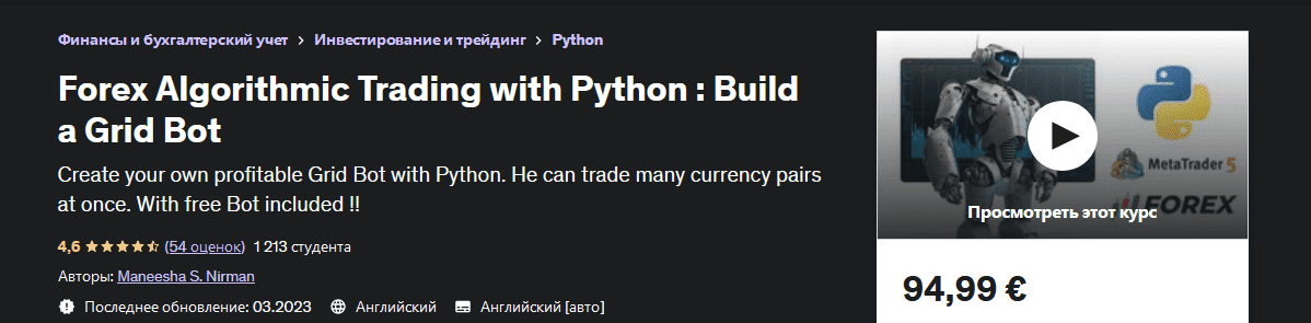 [Udemy] Алгоритмическая торговля на Форекс с помощью Python - создайте бот-сетку (2023)