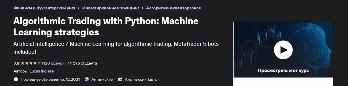 [Udemy] Алгоритмическая торговля с Python: стратегии машинного обучения (2022)