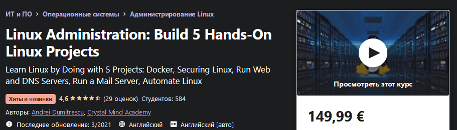 [Udemy] Andrei Dumitrescu - Администрирование Linux: создание 5 практических проектов Linux (2021)