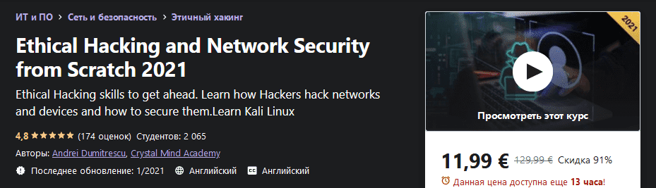 Этот курс предназначен для вас, если вы хотите изучить этический взлом и сетевую безопасность применительно к реальному миру.