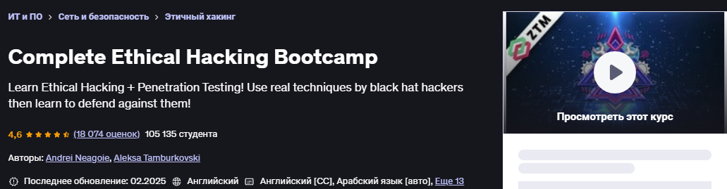 Слив курса Учебный лагерь по этическому взлому [Udemy] [Андрей Негойе]