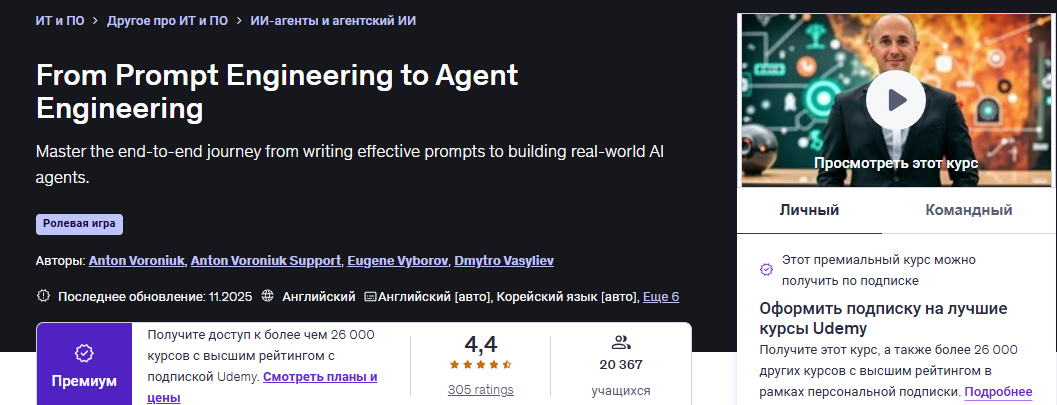 [Антон Воронюк] [Udemy] От разработки промптов до разработки ИИ агентов (2025)