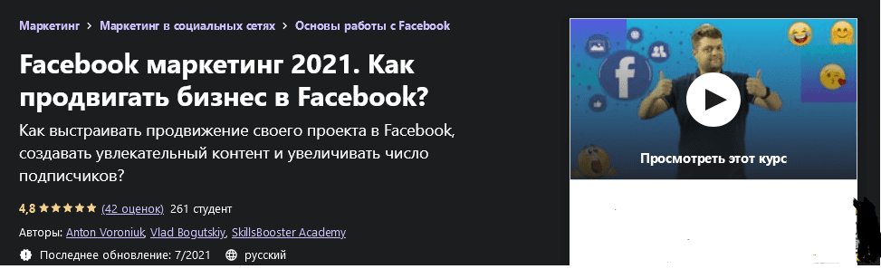 [Udemy] Антон Воронюк, Влад Богуцкий - Facebook маркетинг. Как продвигать бизнес в Facebook? (2021)