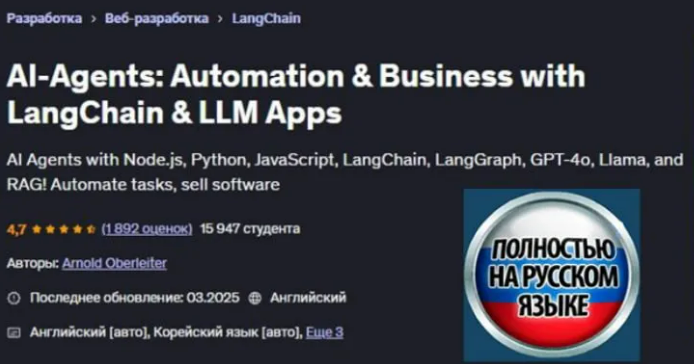 Погрузитесь в «AI Agents: Automation & Business via LangChain Apps» — где вы изучите базовые и продвинутые концепции AI Agents и LLM, их архитектуры и практические приложения. Трансформируйте свое понимание и навыки, чтобы стать лидером в революции AI.